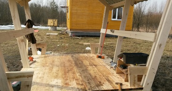 Также можно сделать небольшую лестницу, для удобства захода на высоту пола беседки