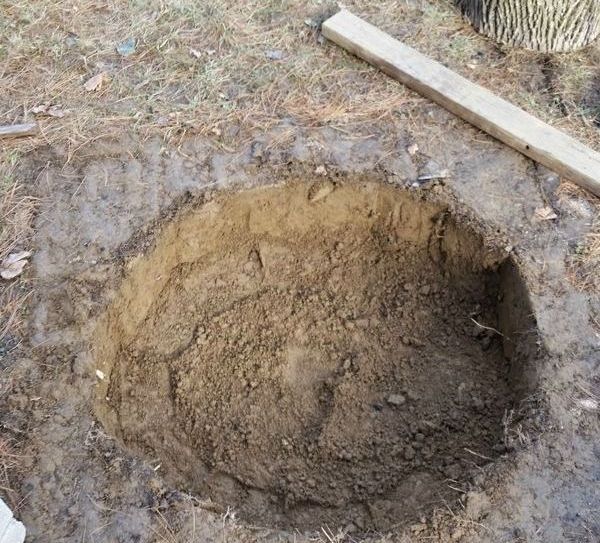 Первоначально необходимо чуть углубить место под кострище.