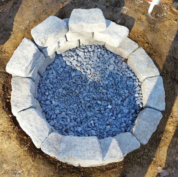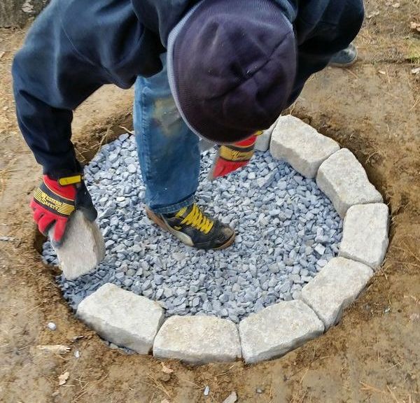 Вокруг кострища «кострового колодца» обсыпаем все также щебенкой.