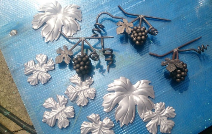 Предварительно были закуплены кованные изделия, которые и применим для калитки. Листья и гроздья винограда.
