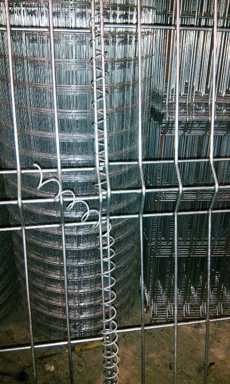 А вот сами сетки между собой необходимо соединить с помощью проволоки. При этом чтобы все смотрелось более эстетично, нежели обычные узелки, можно воспользоваться пружинами. Пружины можно навить из той же самой обычной проволоки. Потом их просто накручиваем на два прудка разных секций сетки, вот так и обеспечивая соединения между собой.