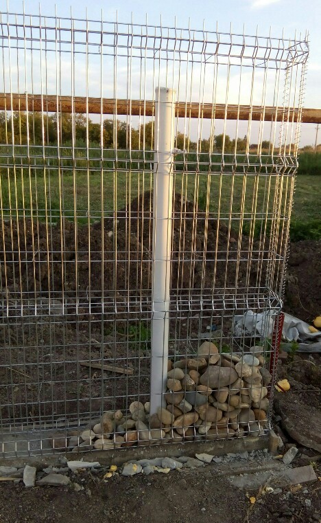 Теперь начинается самое интересное, заполнение забора речной галькой. На самом деле заполнять забор можно практически чем угодно: деревом, стеклом, обломками камней, галькой...