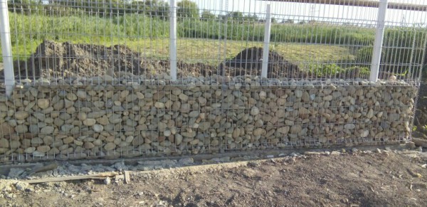Собственно наш забор - габион уже готов. Если камни чуть осядут, то само собой подсыпаем их еще сверху.
