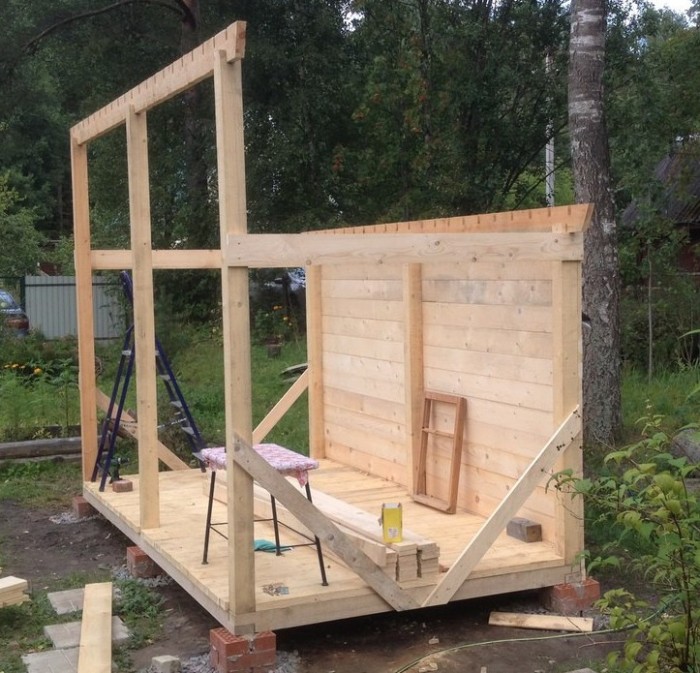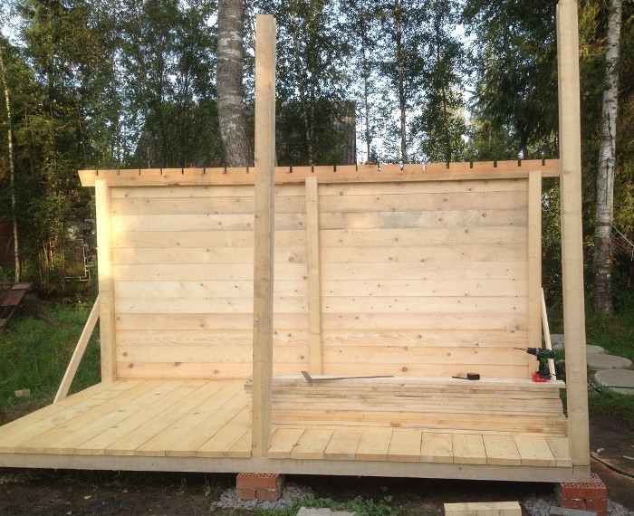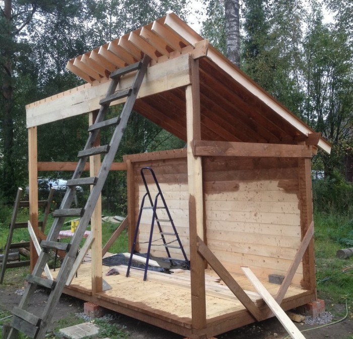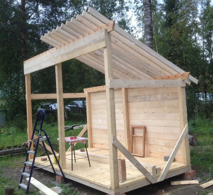 Здесь дерево обработано и крыша покрыта.