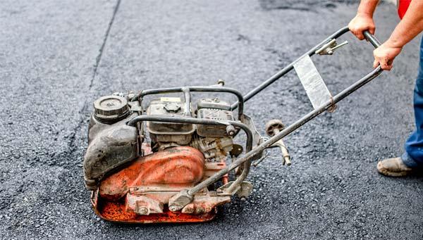 * - уклада асфальта и его уплотнение с помощью виброплиты.