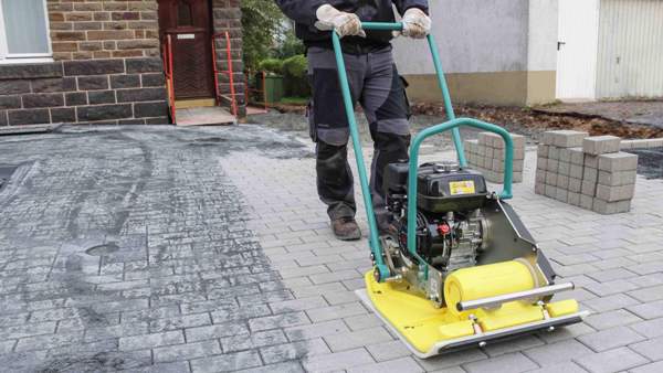 * - уплотнение тротуарной плитки, после укладки.