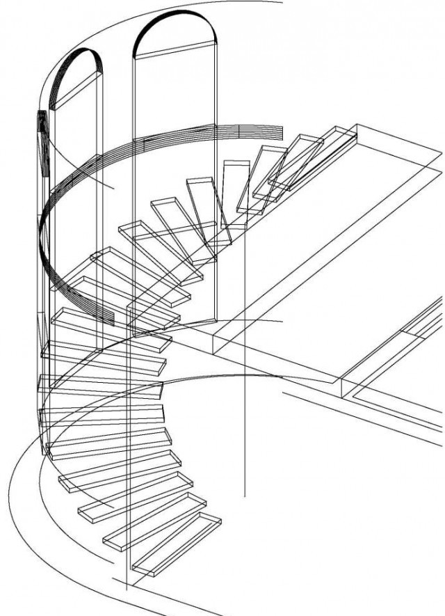 Именно такую винтовую лестницу необходимо смонтировать в эркер здания.