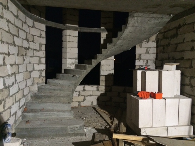 Конечно это еще не готовая к эксплуатации лестница. На ней будут перепады (ступеньки) от опалубки. Она потребует штукатурки, где-то дополнительно доливки, установки перил. Ее надо будет облагородить плиткой, ковкой, мрамором или еще чем-то. В общем, это уже будет относиться не к ремонту, а к отделке.