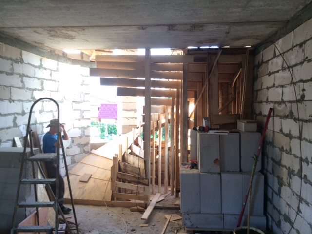 Первоначально надо четко разметить каков будет угол подъема лестницы, и какие материалы вам будут необходимы для ее возведения. Так для опалубки понадобятся доски, из которых будет сделан каркас. Здесь лучше не экономить на опалубке, чтобы не испытать фиаско в связи с обвалом еще не застывшего бетона в ней. Первоначально выполняем как раз опалубку из досок…